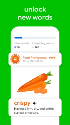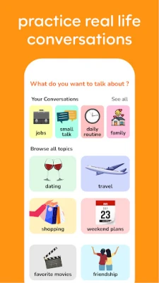 Vocabulary plays a critical role in learning and speaking languages fluently. With Learna AI, you can improve your vocabulary by learning new words and phrases that are practical and useful in daily conversations. Each lesson focuses on building your vocabulary, ensuring you have a broad range of words at your disposal. The app features vocabulary practice that adapts to your level, helping you speak more naturally and confidently.