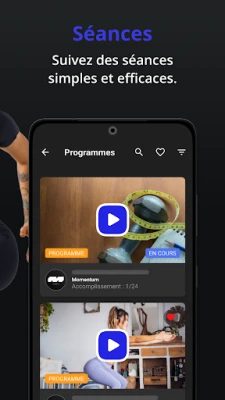 Choisissez des programmes ajustés à vos besoins : des parcours personnalisés pour progresser vers vos objectifs précis ou des plans généraux conçus par des experts pour gagner en force, endurance et mobilité.