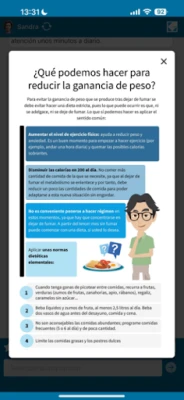 Un chatbot basado en inteligencia artificial que recomendará el profesional sanitario a sus pacientes que deseen dejar de fumar. El objetivo es que los pacientes reciban un acompañamiento que les ayude y facilite estrategias conductuales y estilos de vida durante el proceso de la cesación tabáquica, y esto permita un mejor resultado en el abandono del tabaco.